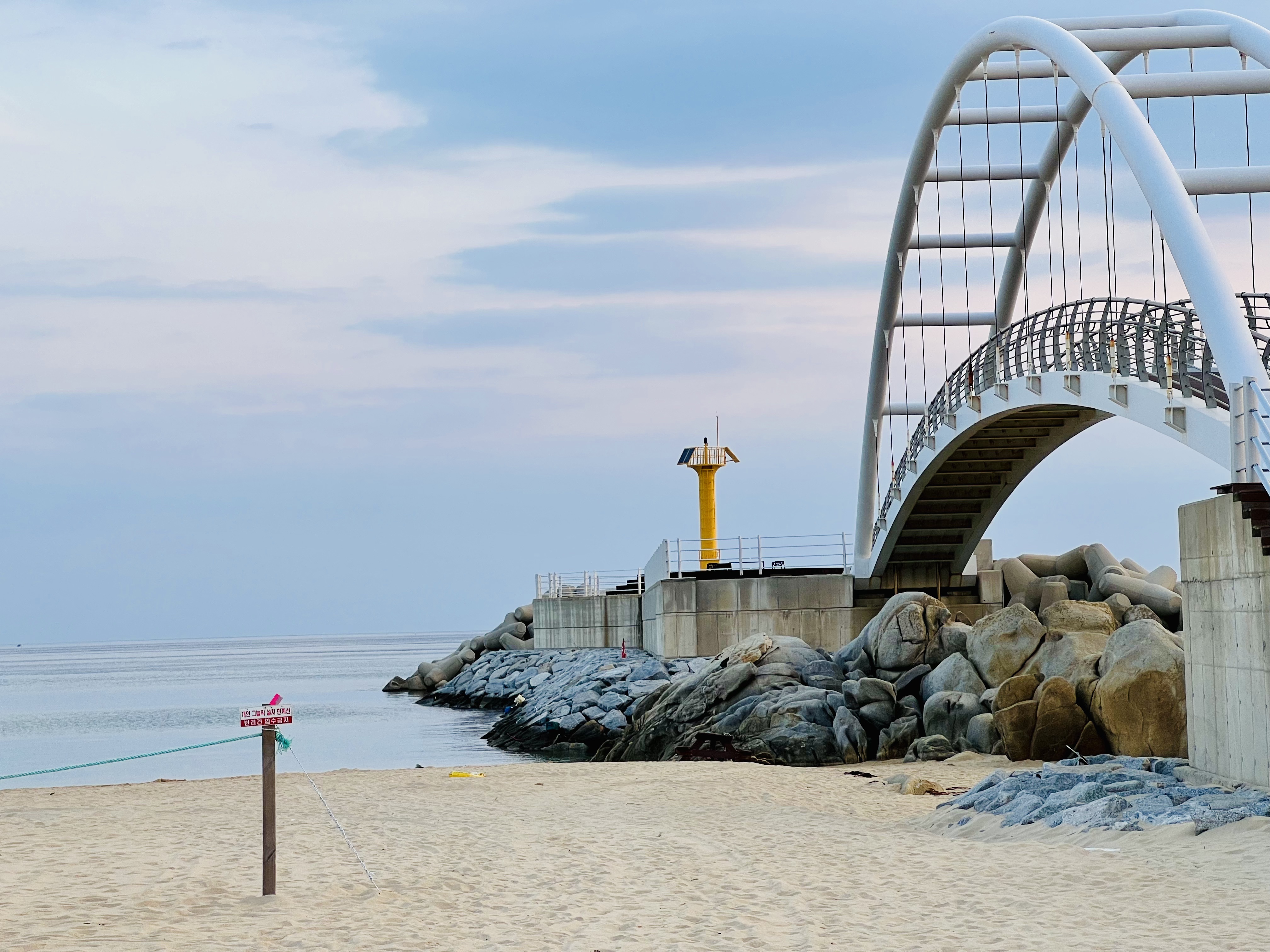 양양의 상징 노란 등대. 반려견 산책 포토 포인트로 인기.